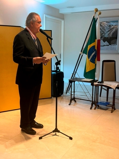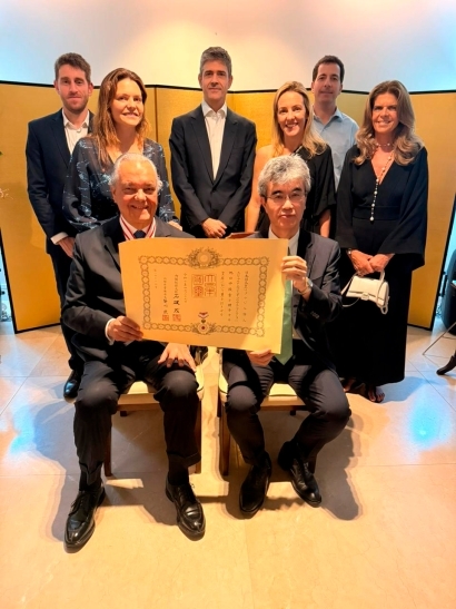| 10月29日、在リオデジャネイロ日本国総領事公邸において、令和7年春の外国人叙勲で旭日中綬章を受章されたエドゥアルド・エウジェニオ・ゴヴェア・ヴィエイラ氏に対する叙勲伝達式を開催しました。 ヴィエイラ氏は、1995年から2024年までリオデジャネイロ州工業連盟(FIRJAN)会頭を務め、リオデジャネイロ州における日本企業の活動を支援し、また、日伯戦略的経済パートナーシップ賢人会議にブラジル側座長として参加し、両国間の経済交流促進に寄与されました。 ヴィエイラ氏の長年のご尽力に、心からの敬意と謝意を表するとともに、栄えあるご受章を心よりお祝い申し上げます。 |